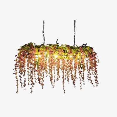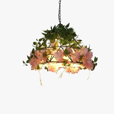 Lampadario Decorativo Rectangolare in Metallo a Forma di Fiore, Rosa/Verde