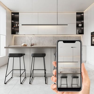 Lampada a sospensione per ufficio minimalista lineare Edge Nero/Argento