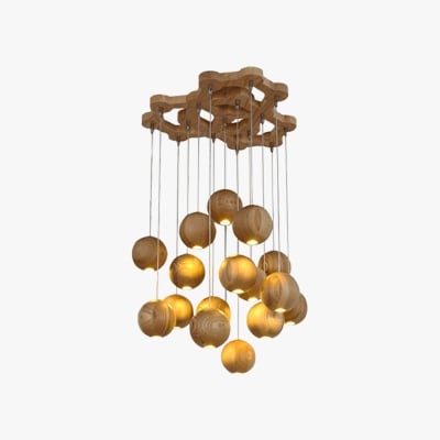 Lampada a sospensione Ozawa Globo Minimalista, Cluster in Legno, colore tronco, Isola Cucina