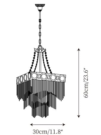 Catena per appendere 30 cm / 11,8″. La lunghezza della catena di sospensione può essere modificata secondo necessità. (contattaci).