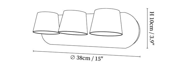 3-Dimensioni della luce: Diametro 38 cm x Altezza 10 cm / ∅ 15″ x Altezza 3,9″