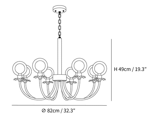 Dimensioni 8 teste: Dia 82cm x H 49cm / ∅ 32.3″ x H 19.3″