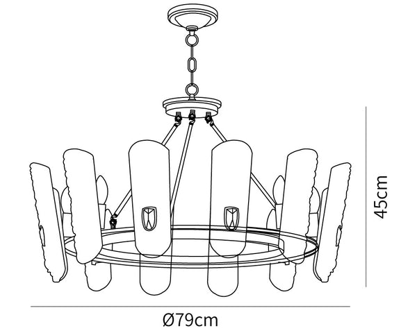 Dimensioni a 12 teste: Ø 79cm x H 45cm / Φ 31.1″ x H 17.7″