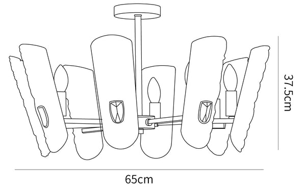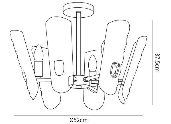 Dimensioni a 6 teste: Ø 52cm x H 37.5cm / Φ 20.5″ x H 14.8″