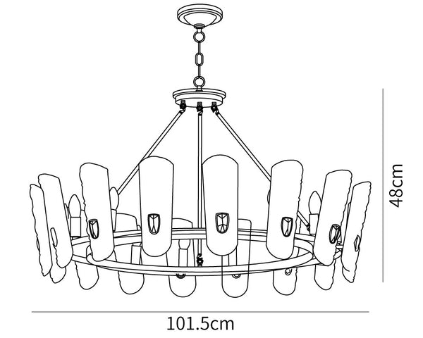 Dimensioni a 16 teste: Ø 101.5cm x H 48cm / Φ 40″ x H 18.9″
