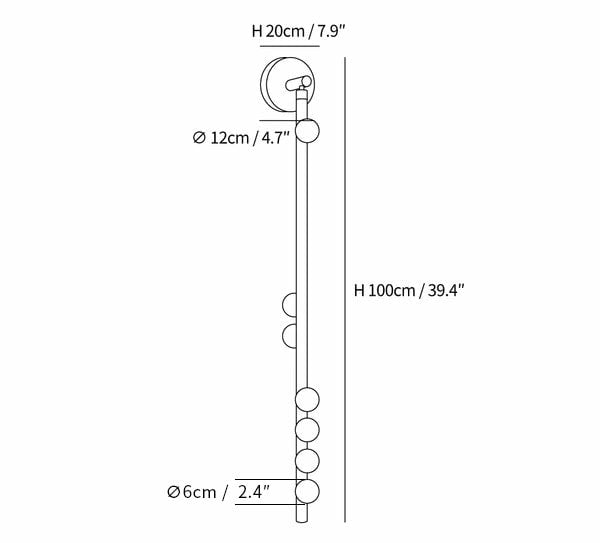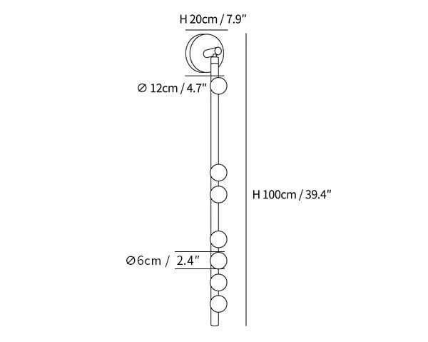 Dimensione 7 teste B: Dia 12cm x H 100cm / ∅ 4.7″ x H 39.4″