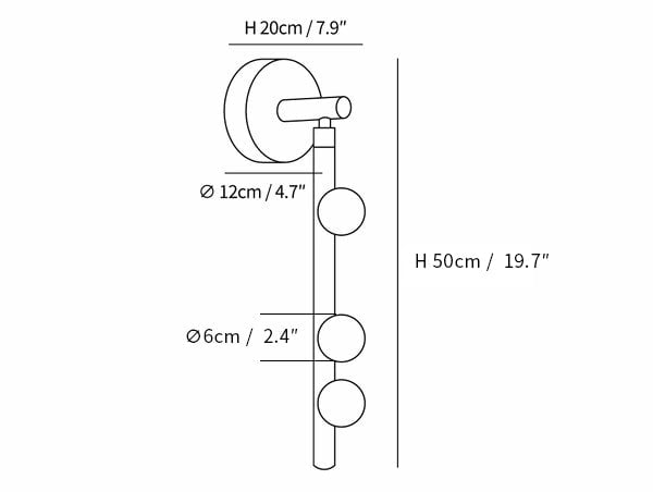 Diametro del paralume sferico: Dia 6cm / ∅ 2.4″
