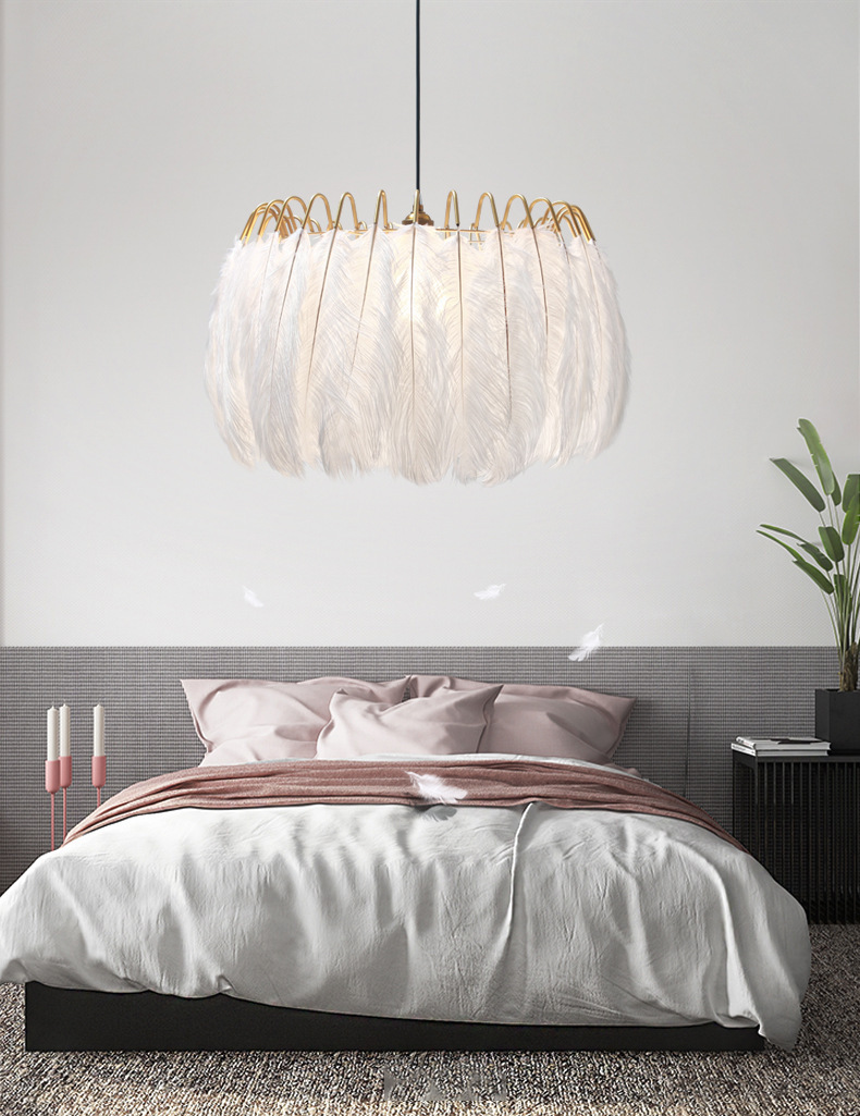 Lampade a sospensione moderne e romantiche per camera da letto O'Moore Feather, bianche