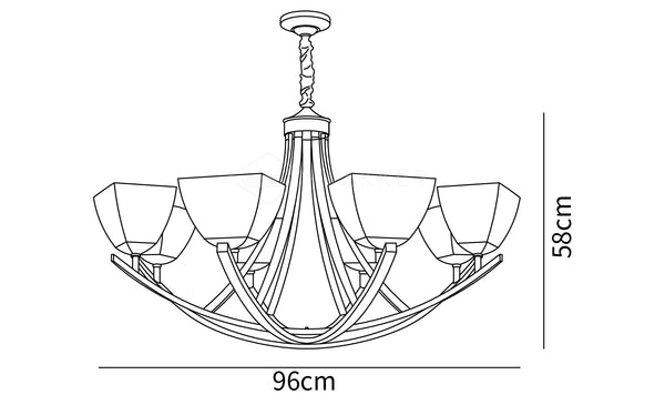 Dimensioni 8 teste: Dia 96cm x H 58cm / ∅ 37.7″ x H 22.8″