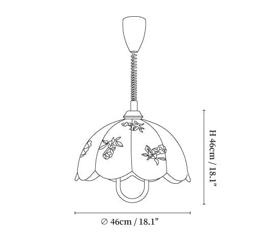 Ispirata alla delicata bellezza di un fiore in fiore, la lampada a sospensione Floral Grace cattura l'eleganza della natura all'interno della tua casa. Le morbide curve del paralume abbinate a intricati motivi floreali evocano la tranquillità di un giardino in fiore, offrendo un'atmosfera serena a qualsiasi stanza.