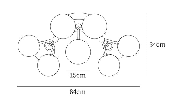 Questa moderna lampada a soffitto a cluster di sfere di vetro aggiunge un tocco di stile a qualsiasi ambiente. Il suo design geometrico a cluster è composto da sfere di vetro bianco che emettono una luce soffusa, perfetta per migliorare l'atmosfera di qualsiasi stanza. Ha anche una struttura di supporto semplice e alla moda per un'installazione facile.