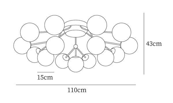 Dimensioni della lampada da 15: Ø 110cm x H 43cm / ∅ 43.3″ x H 16.9″