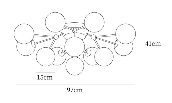 Dimensioni della lampada da 12: Ø 97cm x H 41cm / ∅ 38.2″ x H 16.1″