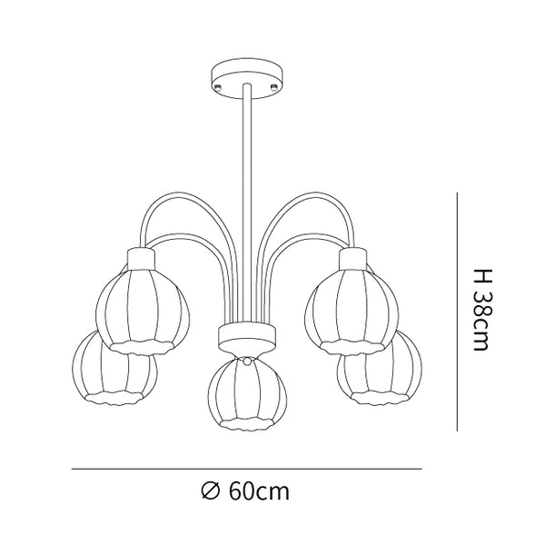 Dimensioni 5 Lampade: Ø 60cm x H 38cm / ∅ 23.6″ x H 15″
