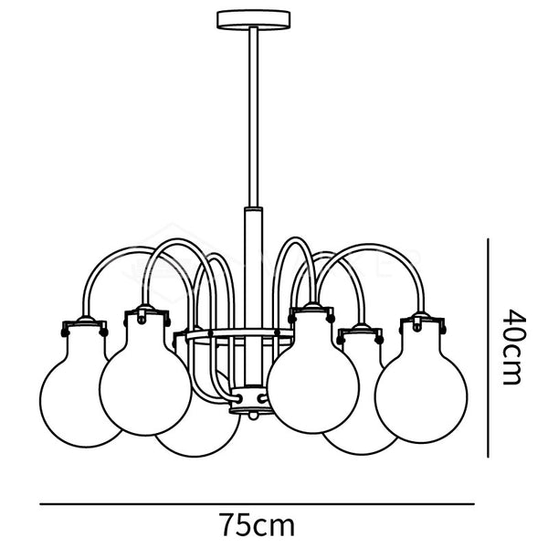 Dimensioni 6 teste: Ø 75cm x H 40cm / ∅ 29.5″ x H 15.7″