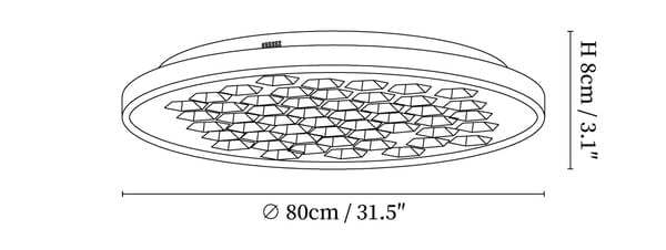 Dimensioni: Diametro 80 cm x Altezza 8 cm / ∅ 31,5" x Altezza 3,1" (Potenza: ~35 W)