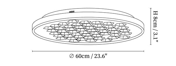 Dimensioni: Diametro 60 cm x Altezza 8 cm / ∅ 23,6" x Altezza 3,1" (Potenza: ~20 W)