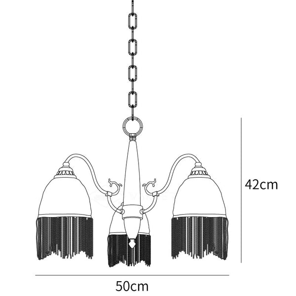 Catena di sospensione 50cm / 19.7″. La lunghezza della catena di sospensione può essere modificata secondo necessità. (contattaci)