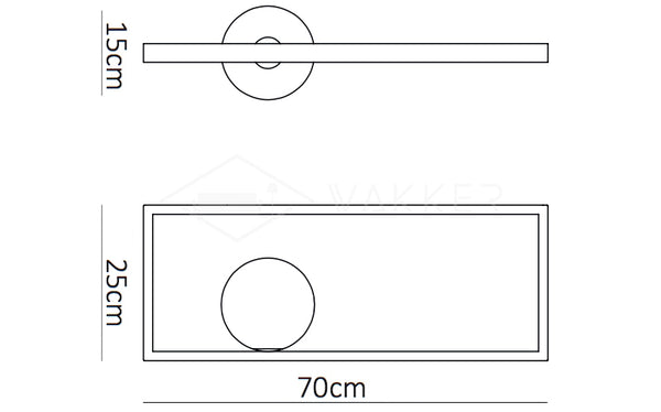 Dimensioni: L 70cm x P 25cm x H 15cm / L 27.5″ x P 9.8″ x H 5.9″