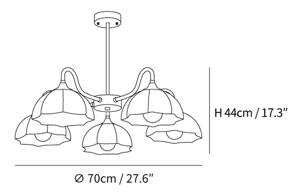 Dimensioni con 5 teste: Dia 70cm x H 44cm / Φ 27.6″ x H 17.3″