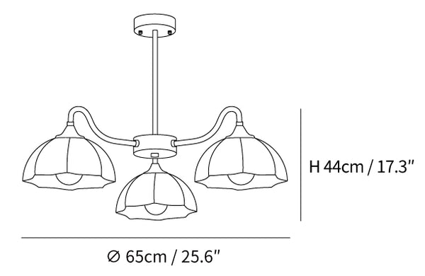 Dimensioni con 3 teste: Dia 65cm x H 44cm / Φ 25.6″ x H 17.3″