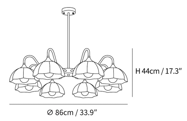 Dimensioni con 8 teste: Dia 86cm x H 44cm / Φ 33.9″ x H 17.3″