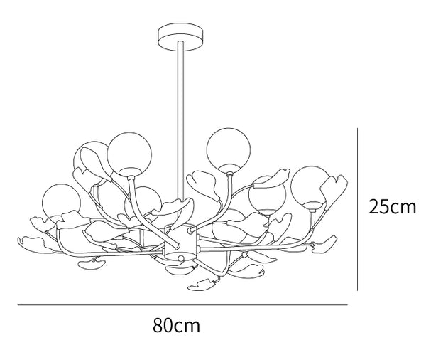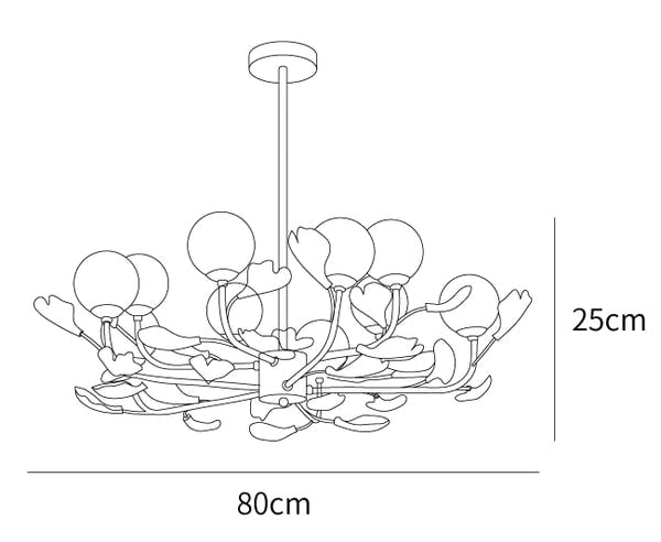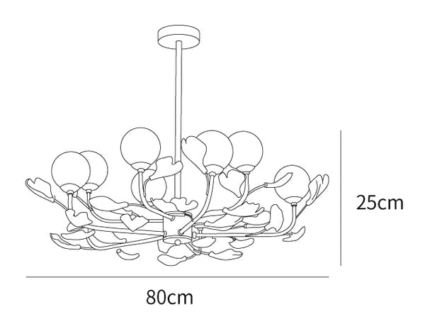 Il lampadario Vanilla Ball presenta una bellissima disposizione di palline di vaniglia color crema sospese da una elegante struttura metallica. L'esquisita combinazione di texture e forme crea un'estetica visivamente attraente, evocando un senso di fascino e grazia. Le delicate palline di vaniglia emanano un bagliore caldo e invitante, proiettando una luce ambientale soffusa che trasforma l'atmosfera di qualsiasi stanza.