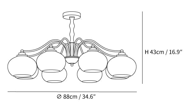 Dimensioni 8 teste: Ø 88 cm x H 43 cm / ∅ 34.6″ x H 16.9″