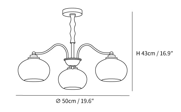 Dimensioni 3 teste: Ø 70 cm x H 43 cm / ∅ 27.6″ x H 16.9″