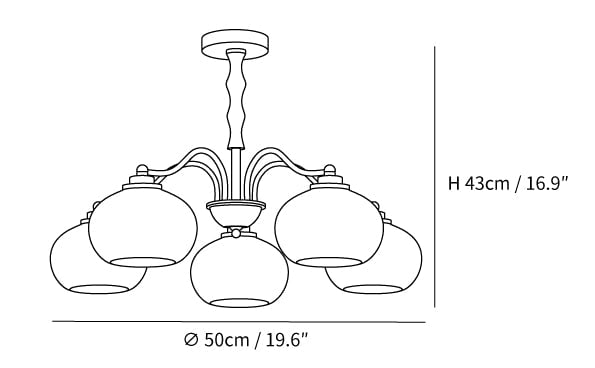 Dimensioni 5 teste: Ø 70 cm x H 43 cm / ∅ 27.6″ x H 16.9″