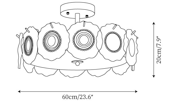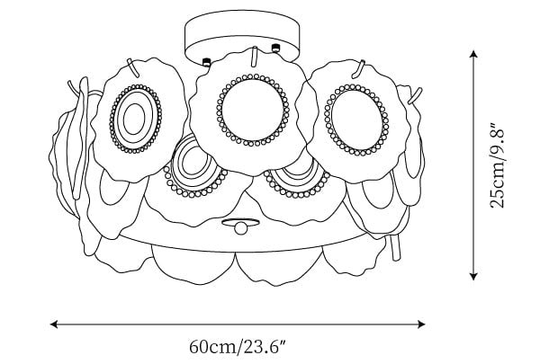 2 strati Dimensioni: diametro 60 cm x H 25 cm / ∅ 23,6″ x H 9,8″ (utilizza otto lampadine E14)