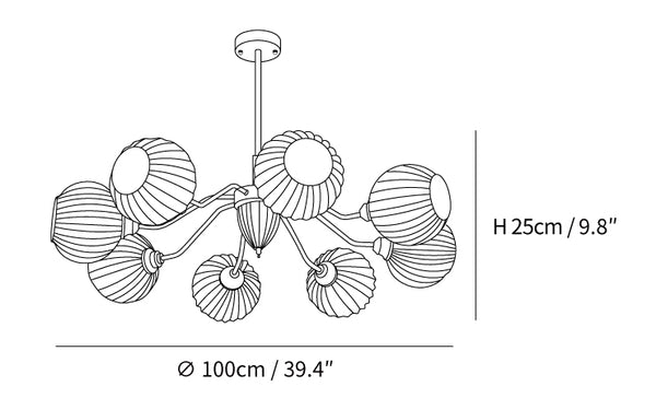 Questo lampadario in vetro rigato offre un'estetica senza tempo con il suo paralume in vetro rigato, di un bianco cremoso e tonalità dorate. L'atmosfera calda e accogliente che crea aggiunge sofisticatezza a qualsiasi stanza, mentre il suo fascino lussuoso e delicato evoca un senso di eleganza.