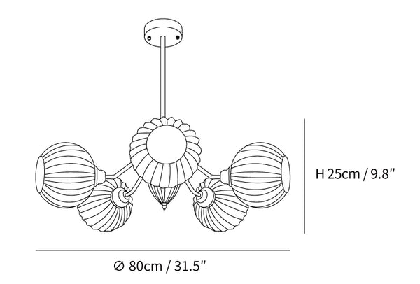 Dimensioni 5 teste: Dia 80cm x H 25cm / ∅ 31.5″ x H 9.8″