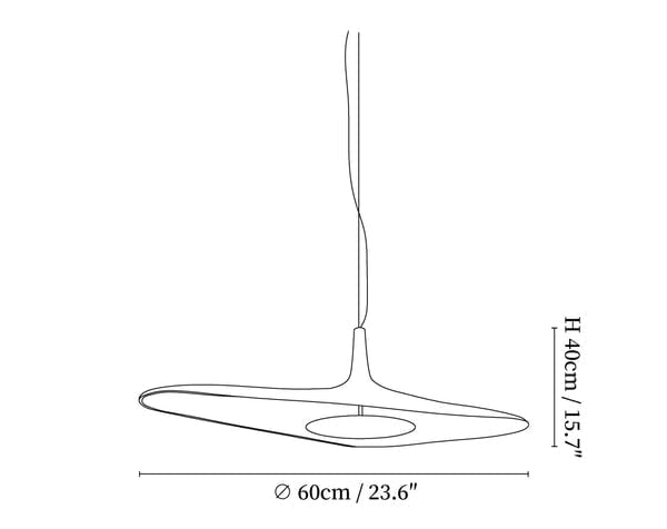 La lampada a sospensione Soleil Noir sfida le leggi della statica con il suo design snello e aereo, sostenuto da un singolo cavo. Lo spessore del corpo di 8-25 mm assicura l'equilibrio baricentrico, fornendo al contempo un'illuminazione discreta ma elegante. Questa lampada innovativa porta un tocco di raffinatezza in qualsiasi spazio.