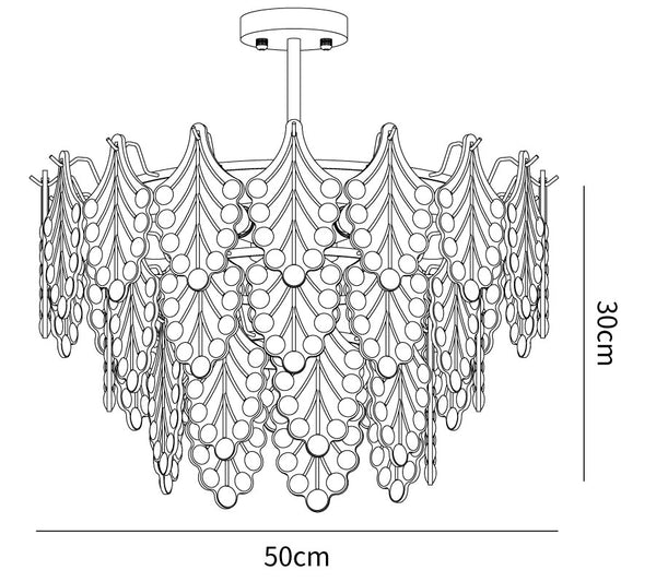 Lunghezza del bastone di sospensione 50cm/19.7″. La lunghezza del bastone di sospensione può essere variata su richiesta.