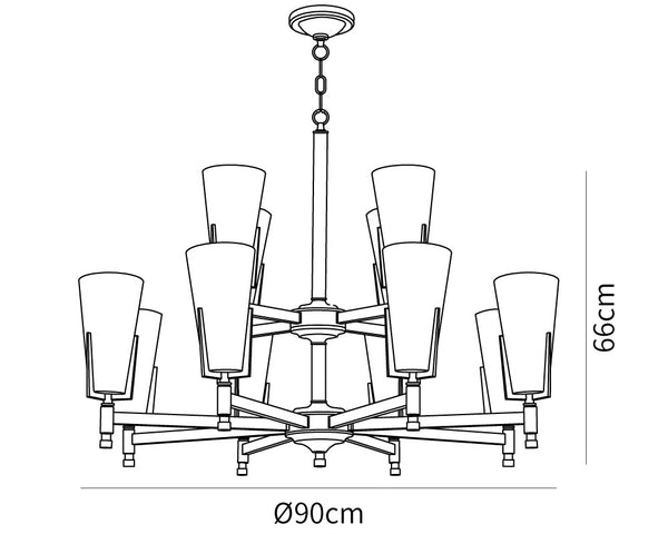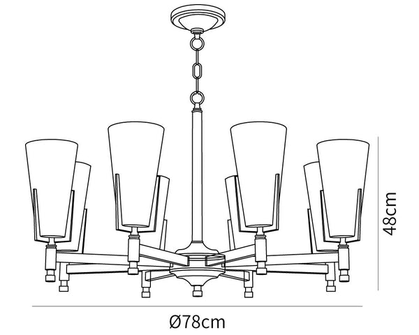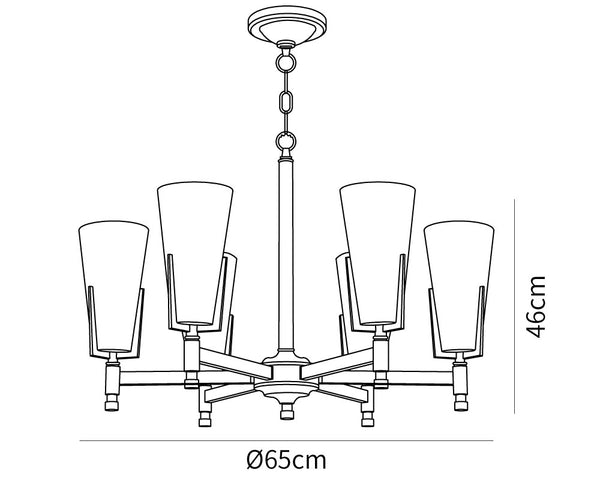 Scegli il lampadario Upton di Fplam Lighting per ripristinare un'aura artistica in uno spazio da pranzo o soggiorno, abbracciando una fusione di vetro e ottone con eleganti paralumi a coppa e raffinati elementi geometrici nel telaio.