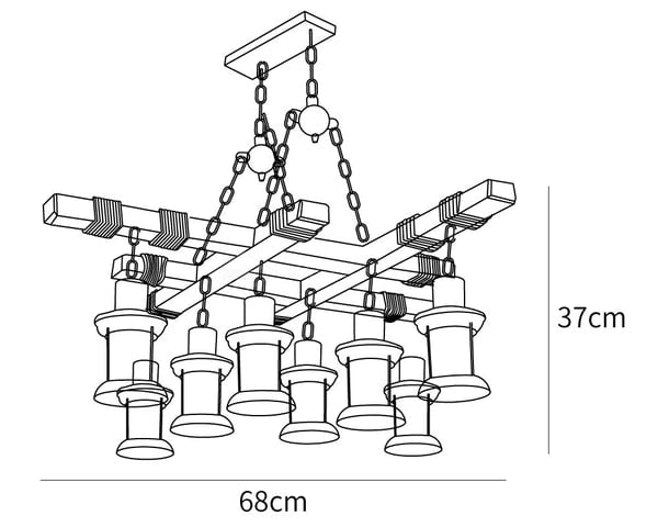 Questo lampadario in stile retro chic è realizzato in vetro e legno, con una forma unica che lo rende un elemento di grande impatto visivo nella tua casa.
