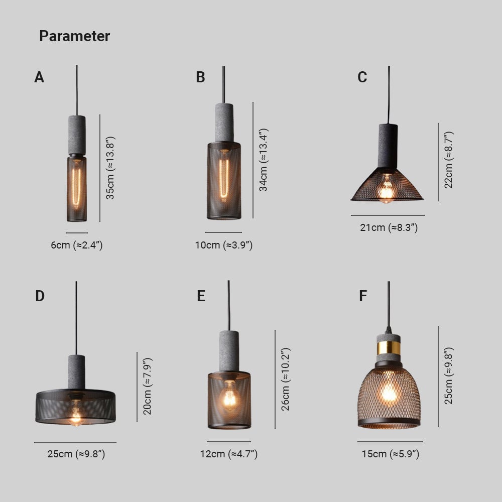 - Abbraccia la sinergia ipnotizzante del cemento grigio scuro e del metallo nero che la nostra lampada a sospensione introduce. Progettata per spazi che risuonano con influenze industriali o wabi-sabi, questa fonte di luce fonde senza sforzo una palette di colori contemporanea con la bellezza grezza degli elementi in cemento e metallo.
