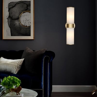 Chan Moderne Dubbele Koppen Metaal Steen Vanity Wandlamp, Messing