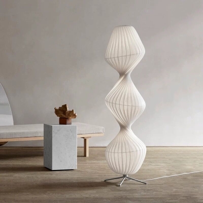 Ozawa Plisseer Statief Vloerlamp, Hout & Stof, 150CM Lang