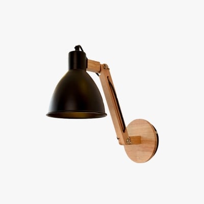 Brady Wandlamp Koepel Modern, Verstelbaar Metaal Hout, Zwart/Wit, Slaapkamer