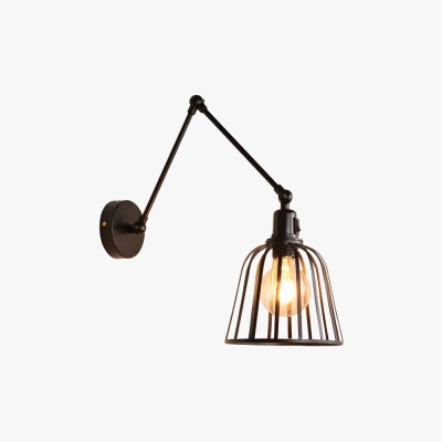 Alessio Vintage Cage Verstelbare Wandlamp, Metaal, Zwart, Woonkamer