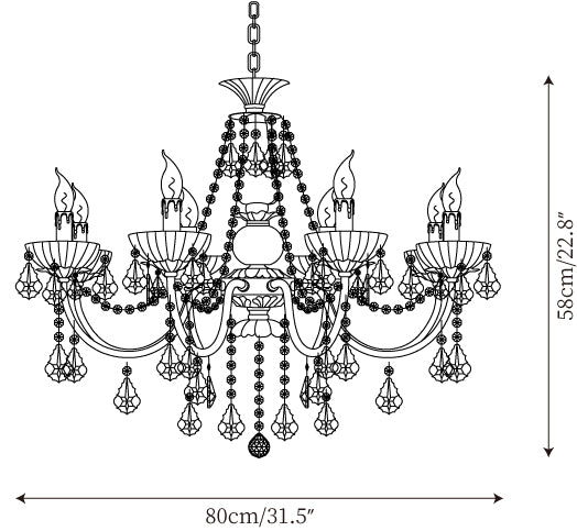 8 lampen Grootte: Dia 80cm x H 58cm / ∅ 31.5″ x H 22.8″ ( gebruikt zes E14-lampen )