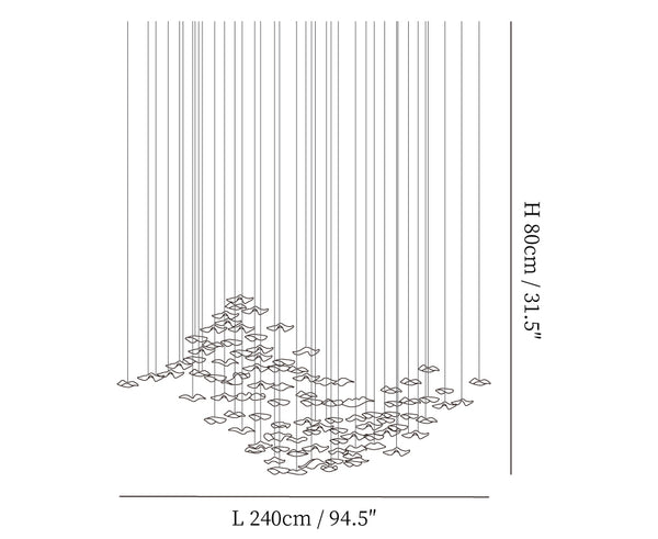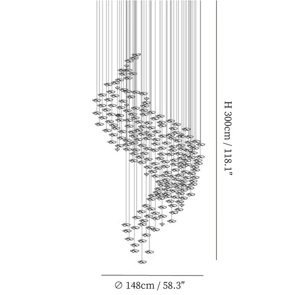 Grootte: Dia 148cm x H 300cm / ∅ 58.3″ x H 118.1″, Cascading Wave: 285 Stukken.