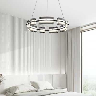 Lampa wisząca Evette 2 kolory zdalne sterowanie 1/2 pierścień miedź i szkło, 9/12/15 - płomieniowa