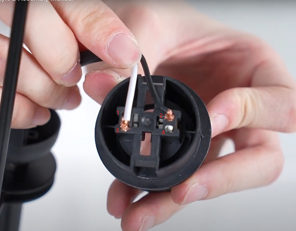 - Podłącz czarny przewód do otworu numer 2.