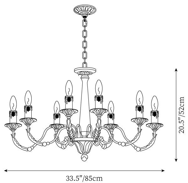 Rozmiar 8 głowic: ∅ 33.5″ x H 20.5″ / Dia 85cm x H 52cm (używa ośmiu żarówek E14)
