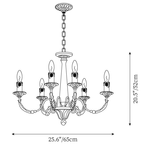 Rozmiar 6 głowic: ∅ 25.6″ x H 20.5″ / Dia 65cm x H 52cm (używa sześciu żarówek E14)