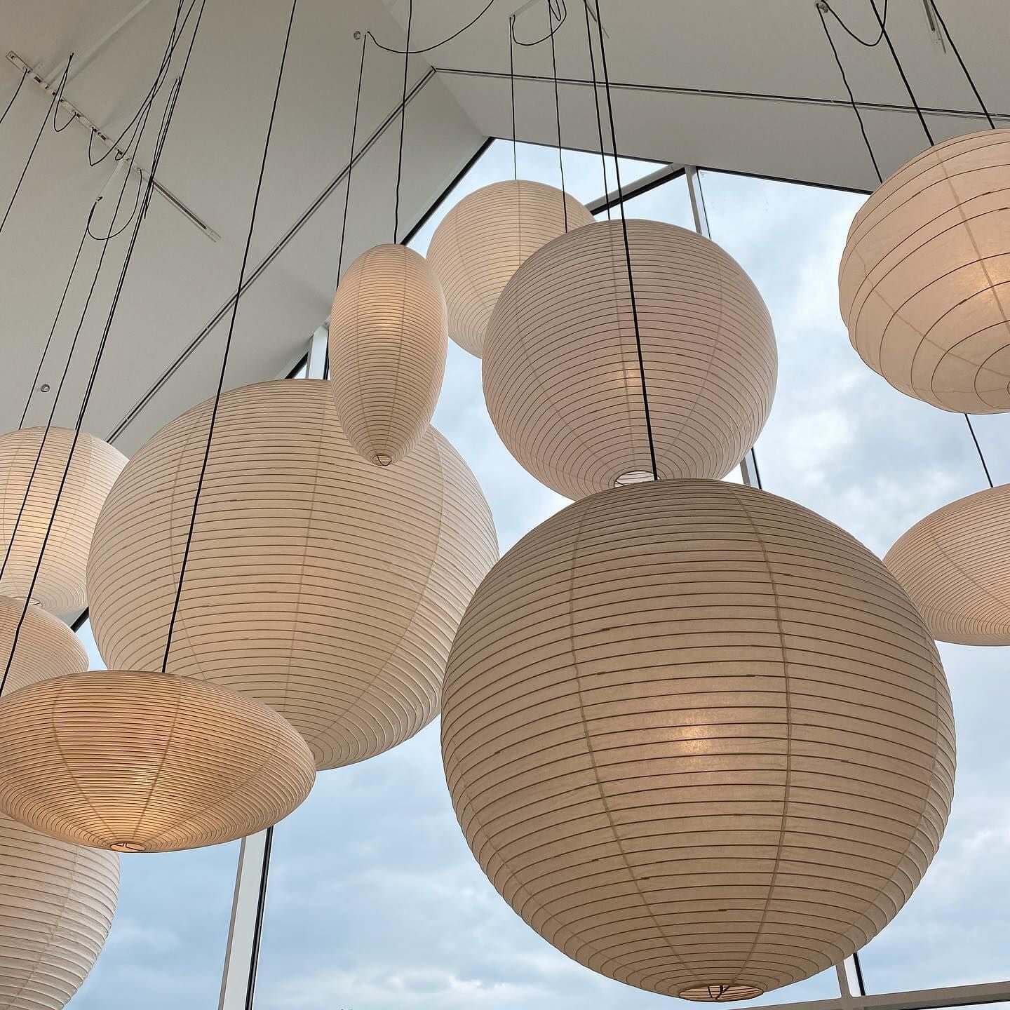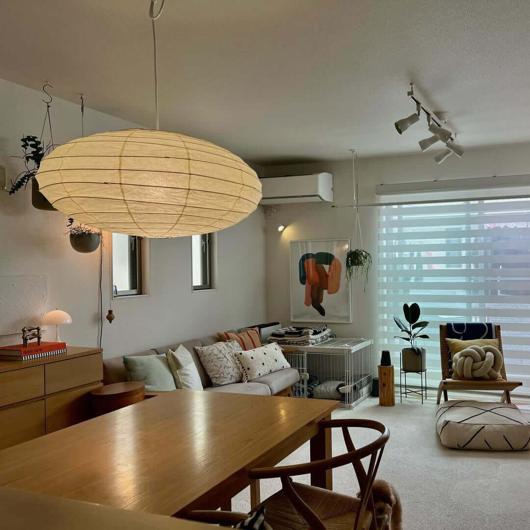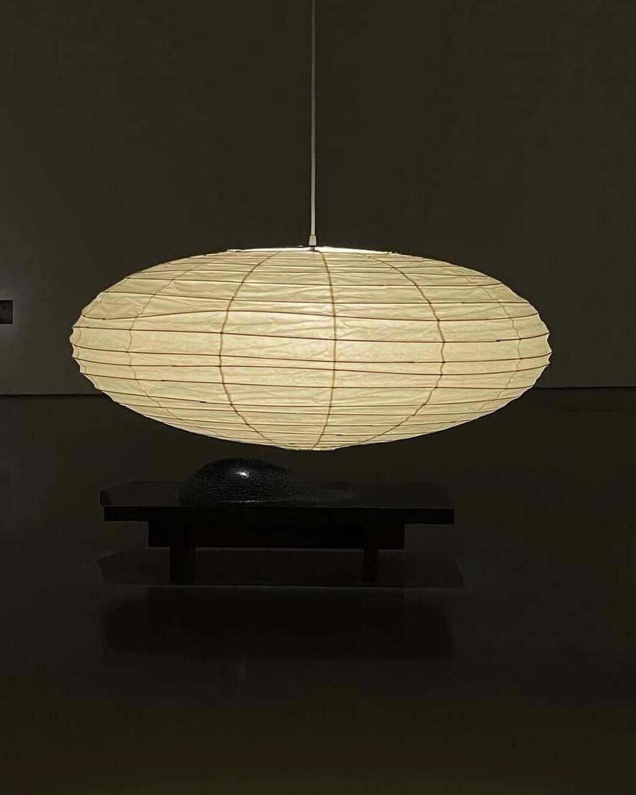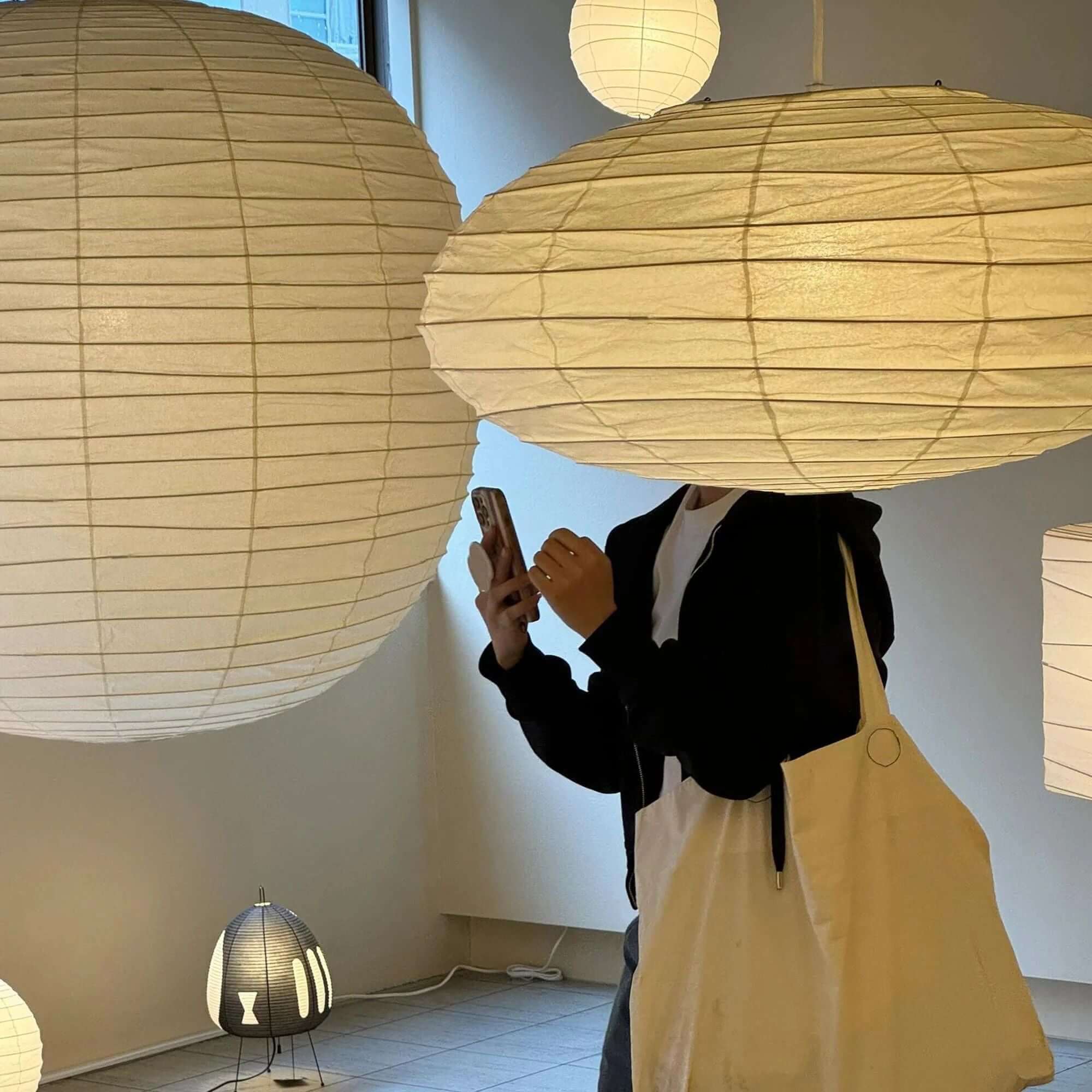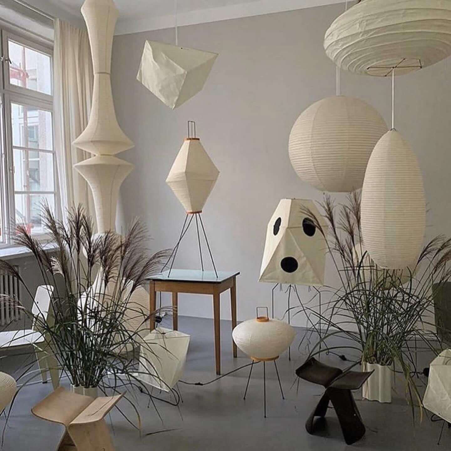 Die Akari-Leuchten sind handgefertigt aus Bambus-Rippen und transluzentem Washi-Papier, das aus der inneren Rinde des Maulbeerbaums hergestellt wird. Der Designer hat das Licht von Akari mit Sonnenlicht verglichen, das durch traditionelle Shōji-Papiertüren gefiltert wird – die Lichtskulpturen erzeugen einen warmen Schein und eine angenehme Atmosphäre. Laut dem Designer: "Alles, was Sie benötigen, um ein Zuhause zu beginnen, ist ein Raum, ein Tatami und Akari.”