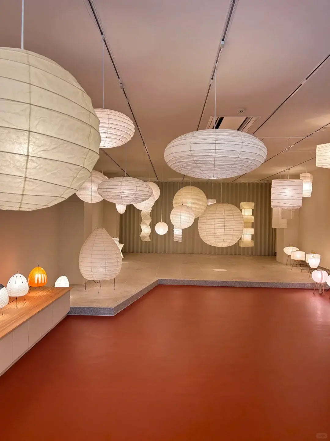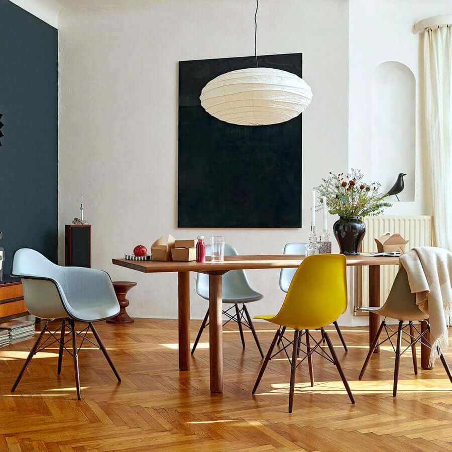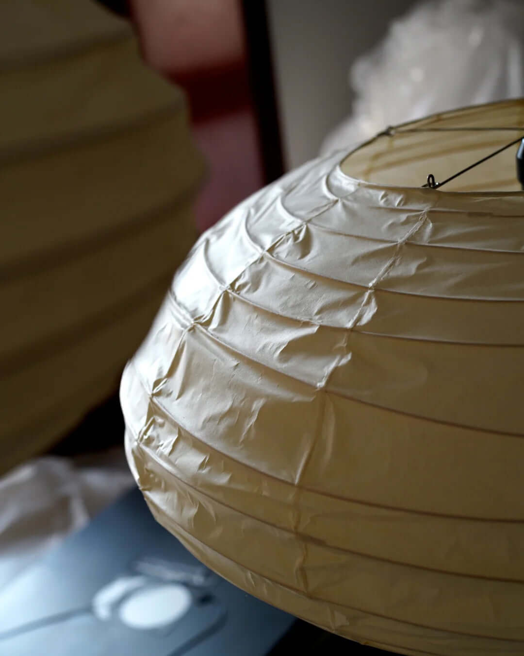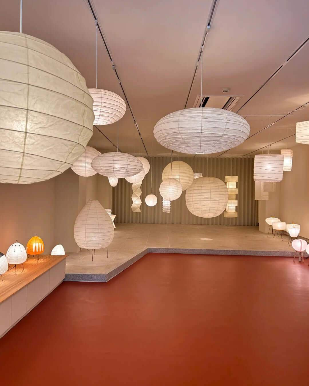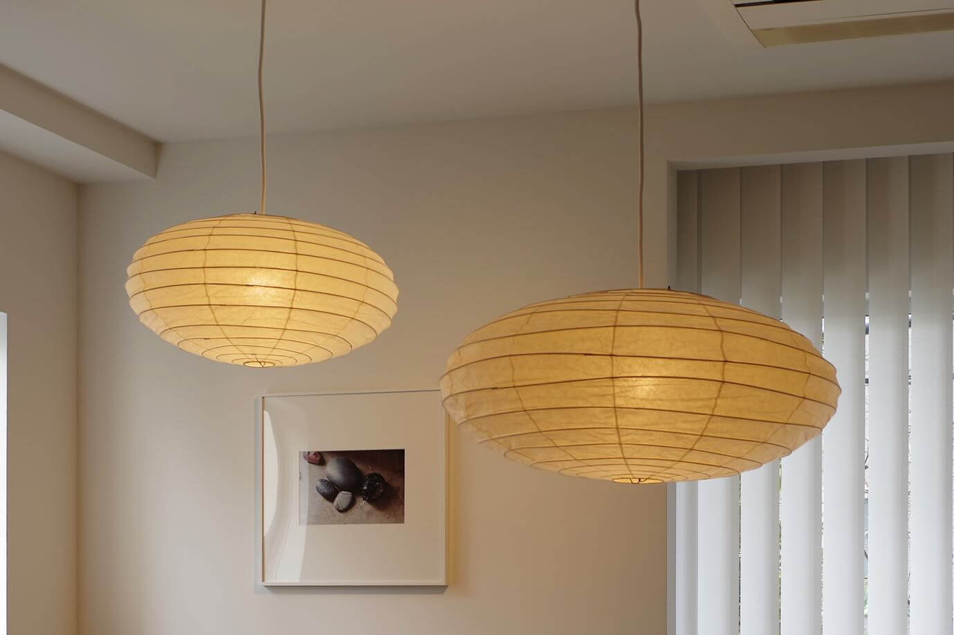 Die Akari-Leuchten sind handgefertigt aus Bambus-Rippen und transluzentem Washi-Papier, das aus der inneren Rinde des Maulbeerbaums hergestellt wird. Der Designer hat das Licht von Akari mit Sonnenlicht verglichen, das durch traditionelle Shōji-Papiertüren gefiltert wird – die Lichtskulpturen erzeugen einen warmen Schein und eine angenehme Atmosphäre. Laut dem Designer: "Alles, was Sie benötigen, um ein Zuhause zu beginnen, ist ein Raum, ein Tatami und Akari.”